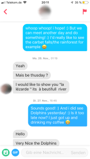 Then I got the idea while sitting on the balcony and having a drink: Let's try Tinder!
